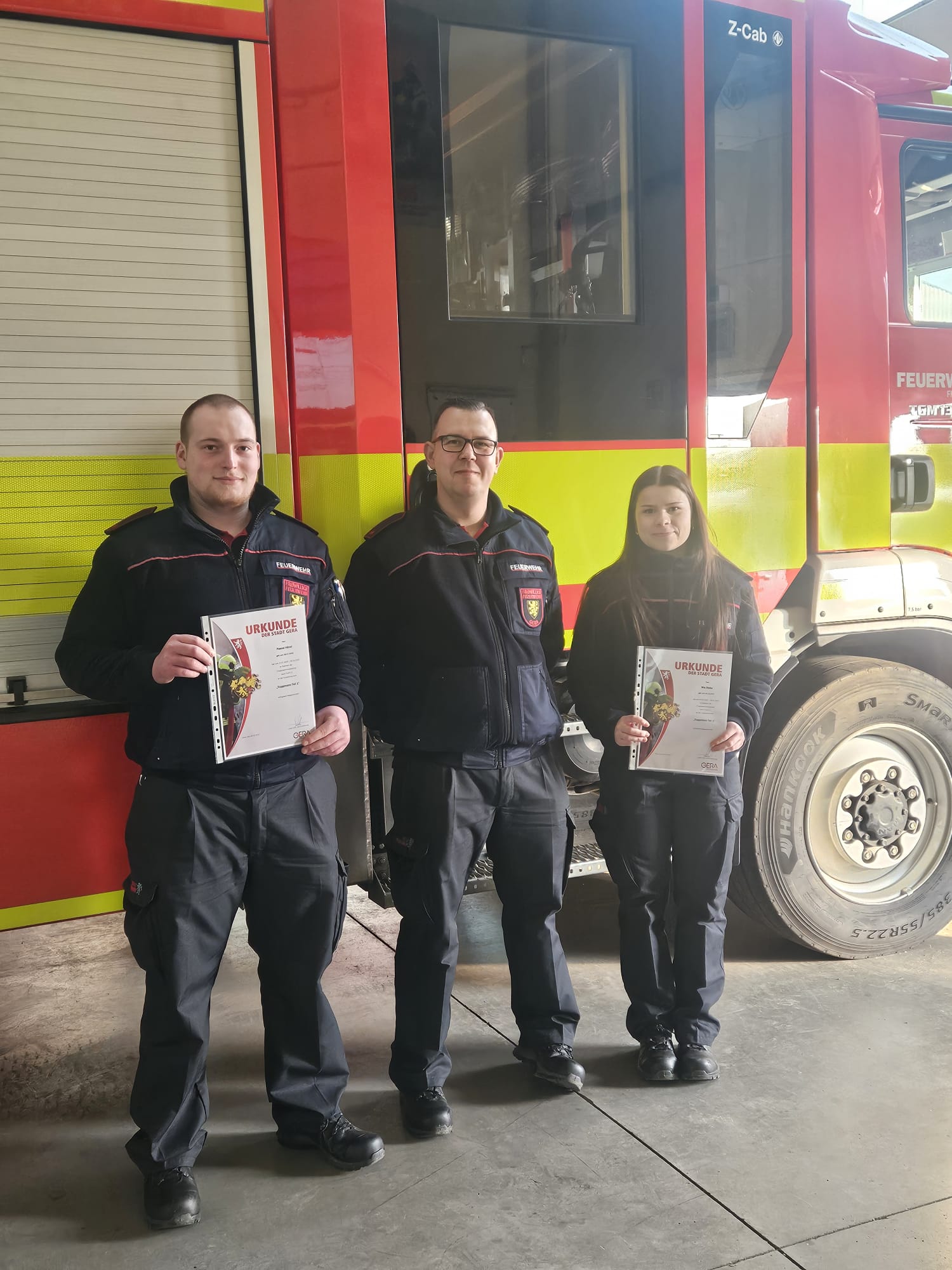 Mit dabei waren auch unsere drei Kameraden Mia Dieke, David Theumer und Pascal Hänel! Während Mia noch auf ihren 18. Geburtstag warten muss, dürfen David und Pascal ab sofort die Einsatzabteilung unterstützen.